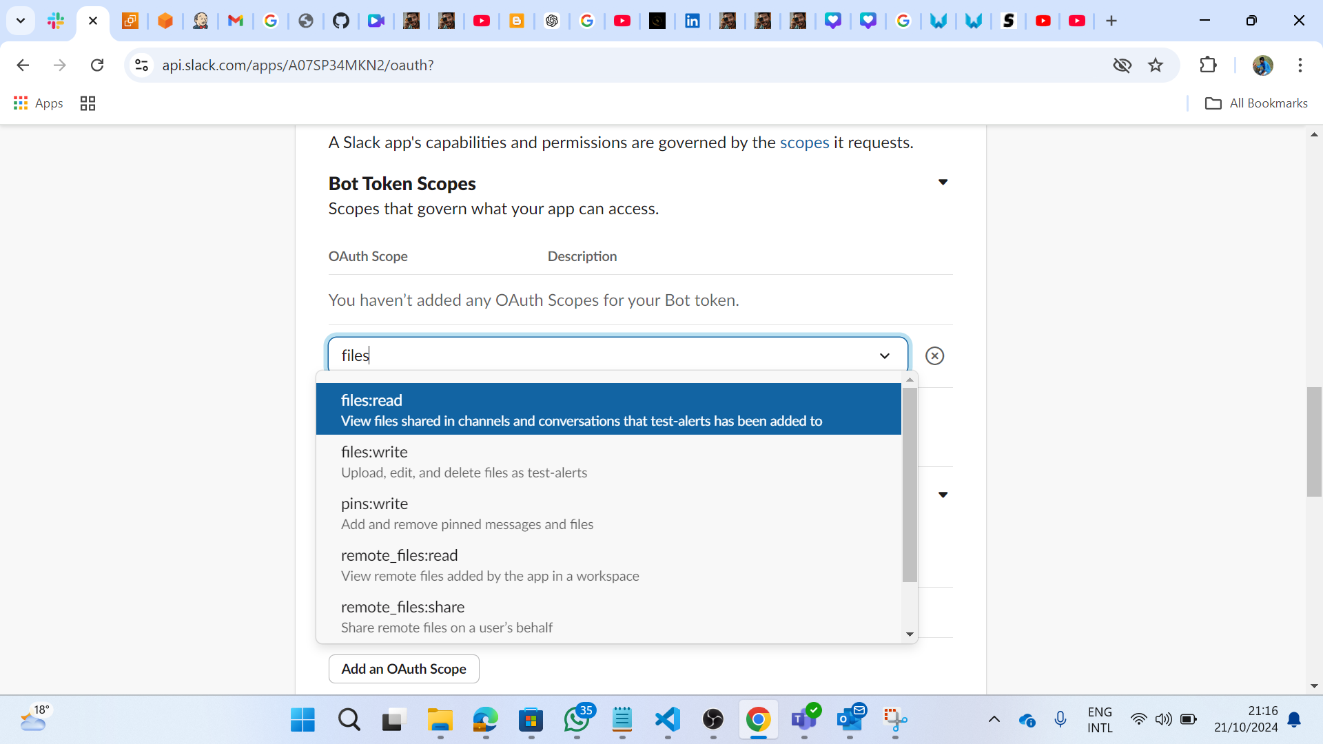 Now before we configure slack alerts, please do make note of important data like Bot token which was generated at OAuth token
